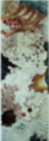 It is a spontaneous and immediate way to make an image. I draw, paint or wipe the inky design with water based inks onto a plexiglass plate. When the work is finished, I place a wet paper over the plate and run through the manual press. The monotype is a unique image as its name implies and that cannot be identically repeated. After it is printed, it may take hours or days to complete the artwork by adding desired colors, burnished lino shapes or collage.